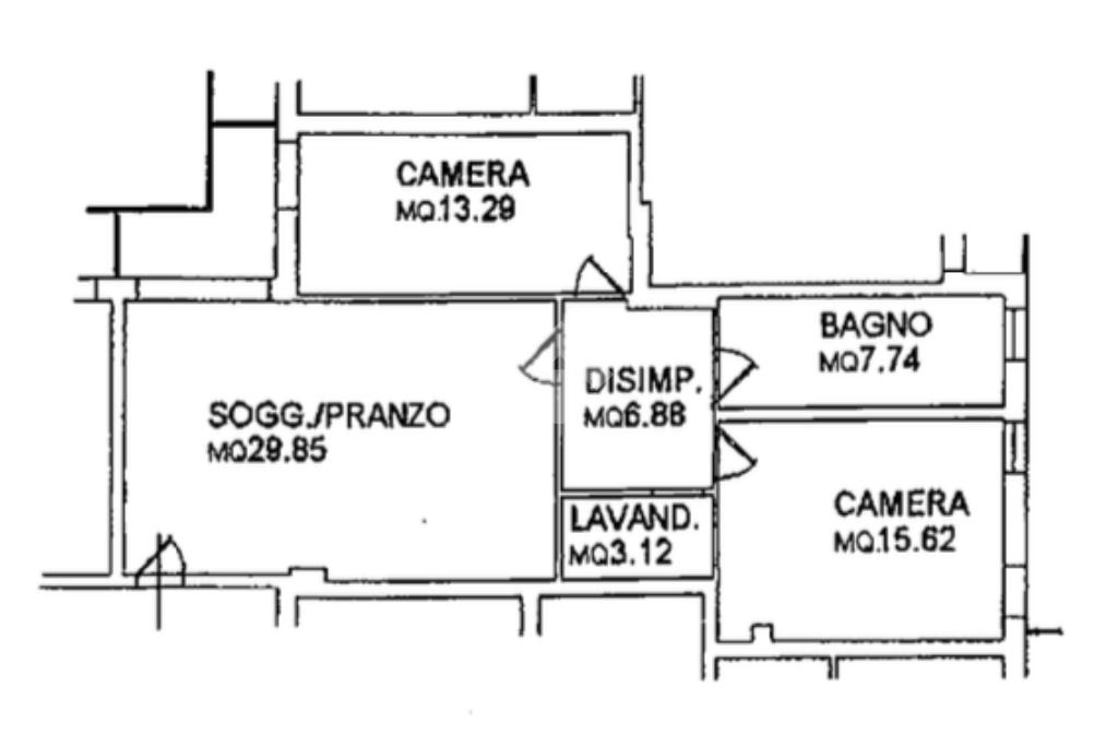 L’ingresso si apre su una luminosa zona giorno con cucina e soggiorno open space. Attraverso il disimpegno si accede alla zona notte, dove troviamo un comodo ripostiglio, un bagno finestrato con doccia e due camere da letto, una singola e una matrimoniale.