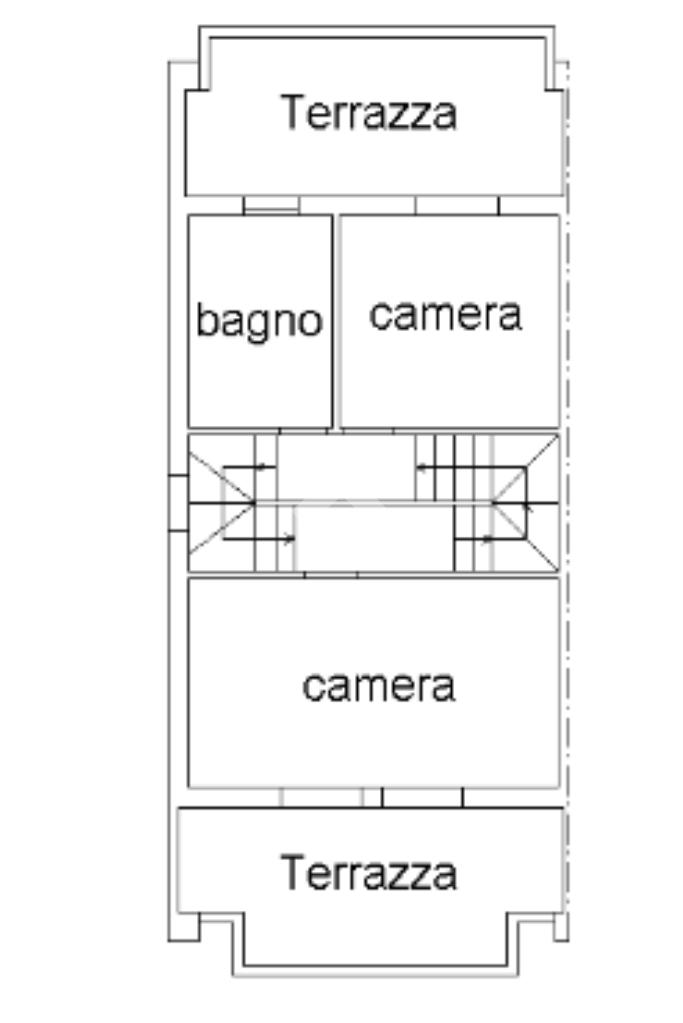 Al piano terra si trova la zona giorno composta da soggiorno, cucina separata e bagno di servizio. Salendo al primo piano si sviluppa la zona notte con una camera singola e una camera matrimoniale, entrambe dotate di ampio terrazzo, oltre a un bagno finestrato con vasca. Al secondo piano è presente un bagno finestarto con doccia e due pratici locali ad uso magazzino, ideali come spazi di deposito o da adattare alle proprie esigenze.