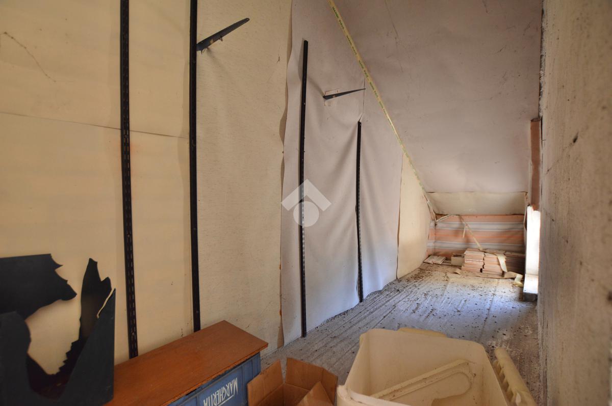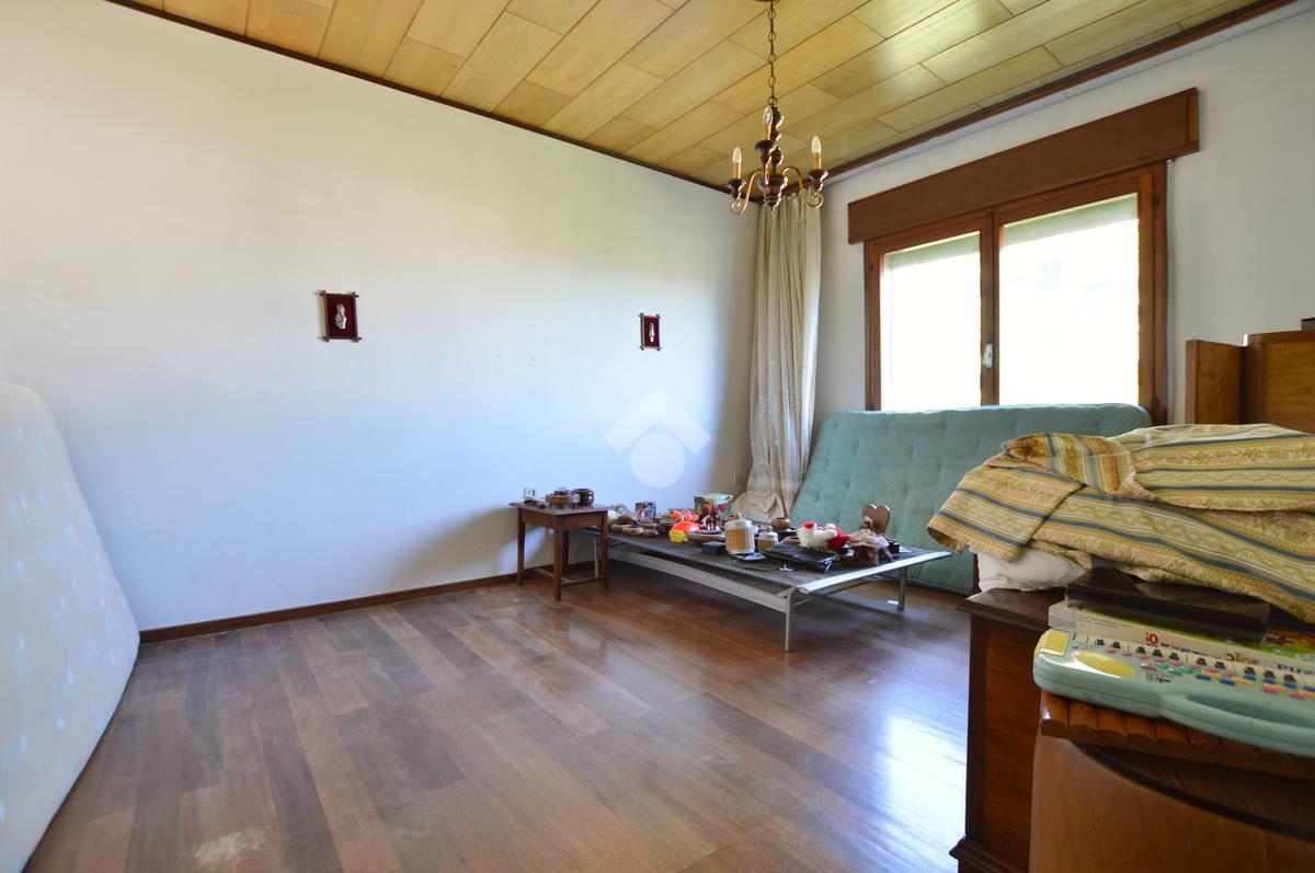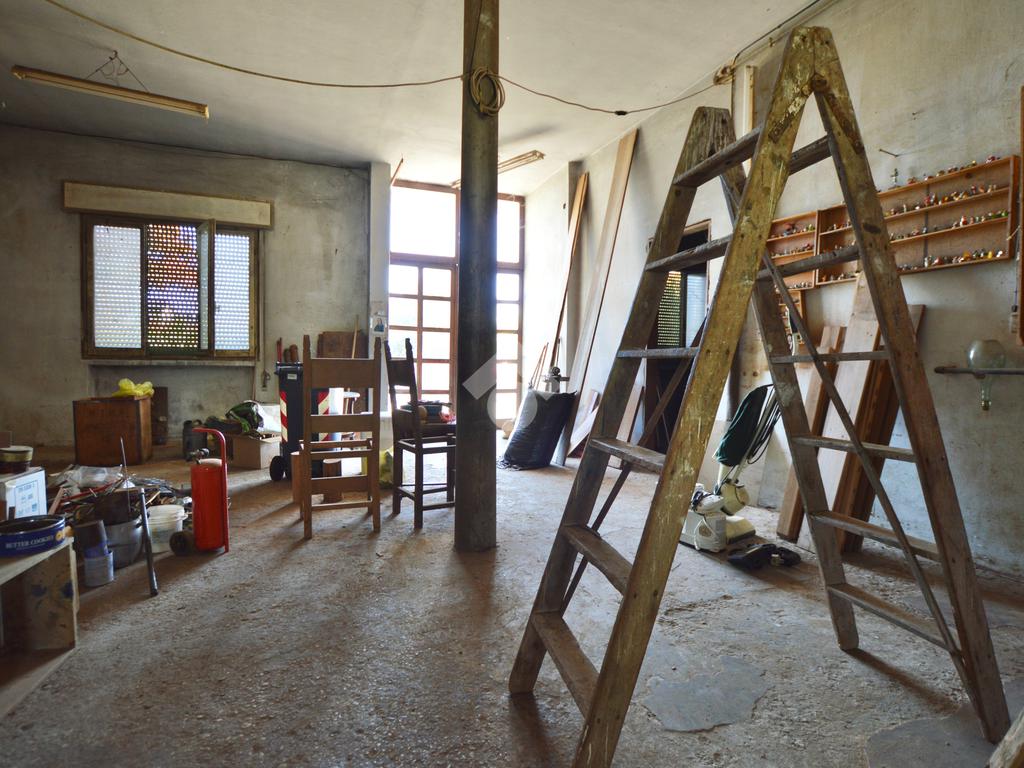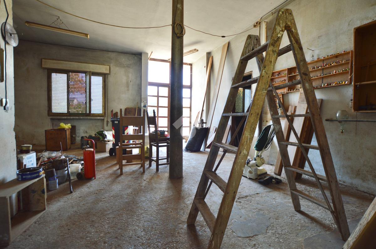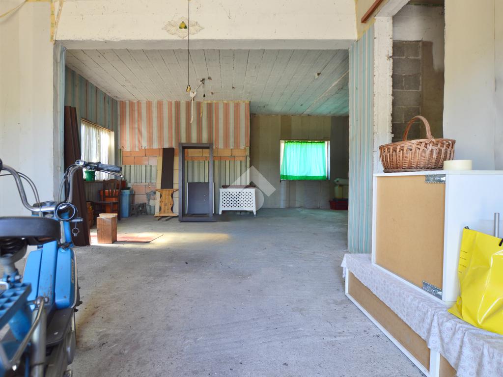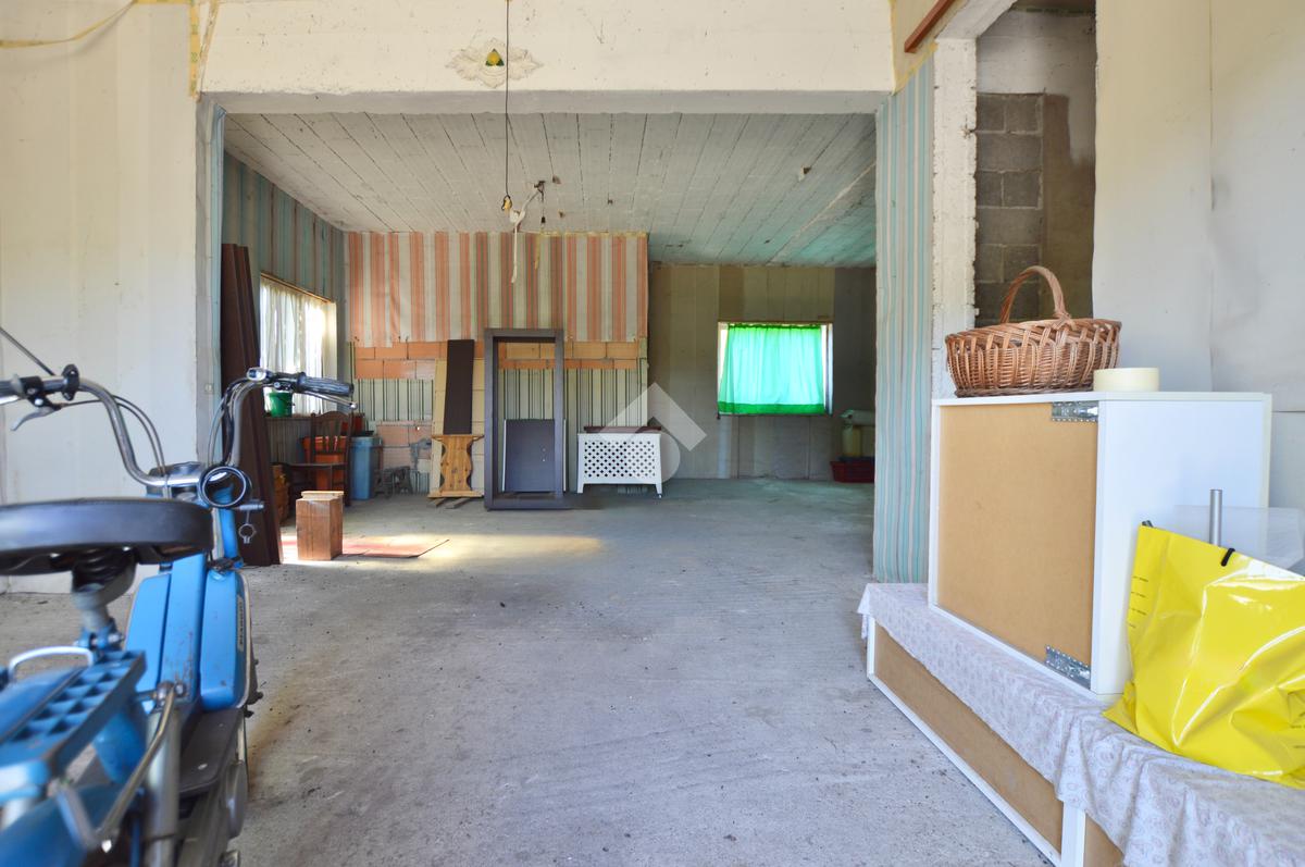 La porzione di destra si sviluppa interamente su un unico livello e presenta cucina e soggiorno separato, due camere da letto matrimoniali, un ripostiglio e un bagno finestrato con vasca. L’immobile dispone inoltre di due terrazzi, un giardino privato, un ampio magazzino al piano terra di circa 70 mq e un garage di circa 18 mq.