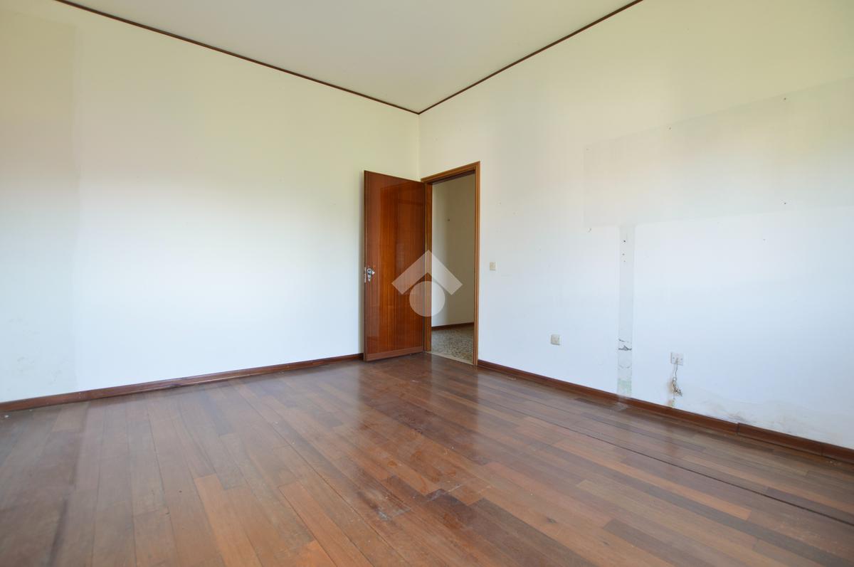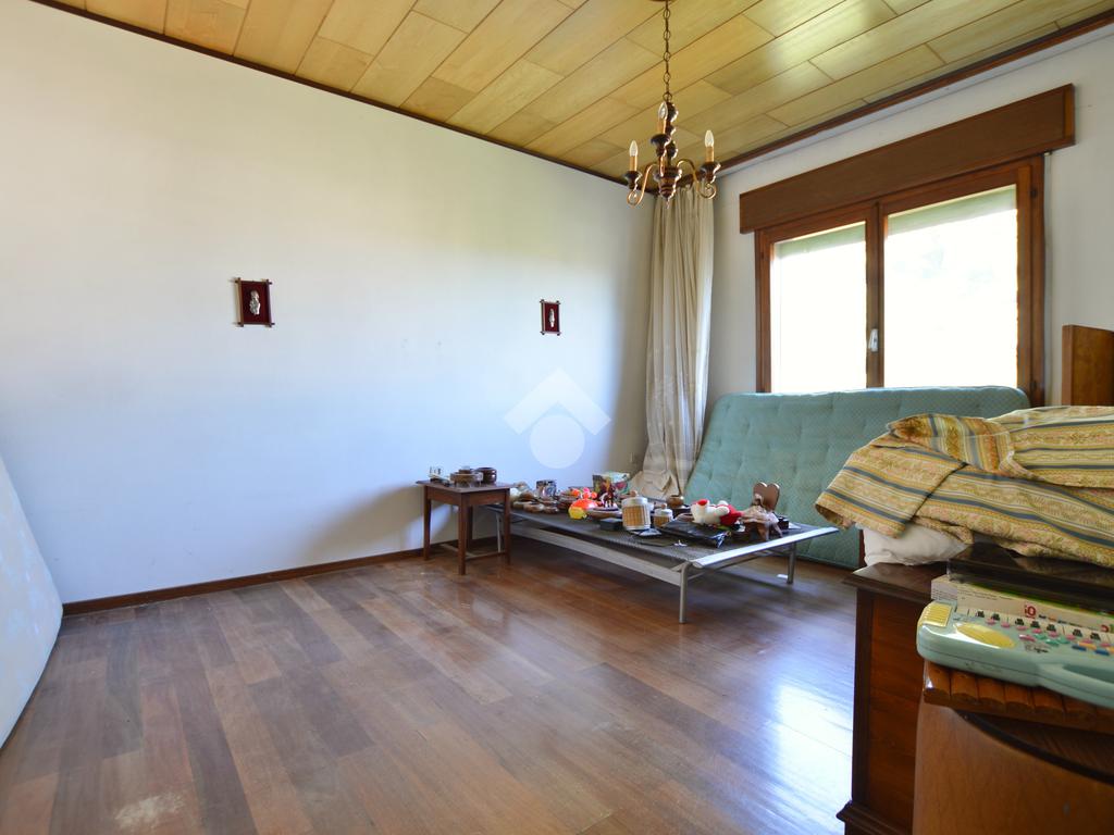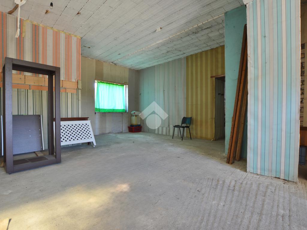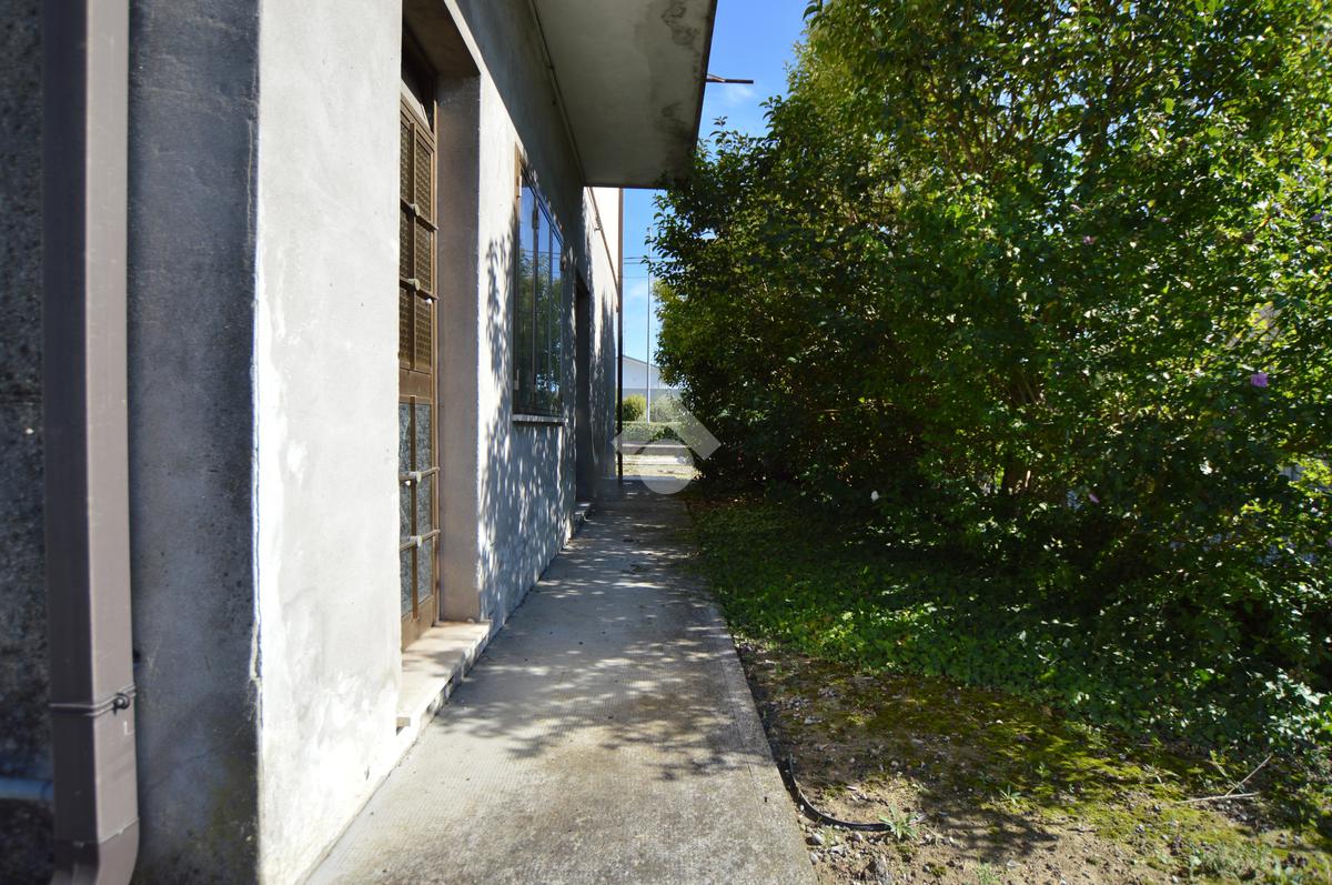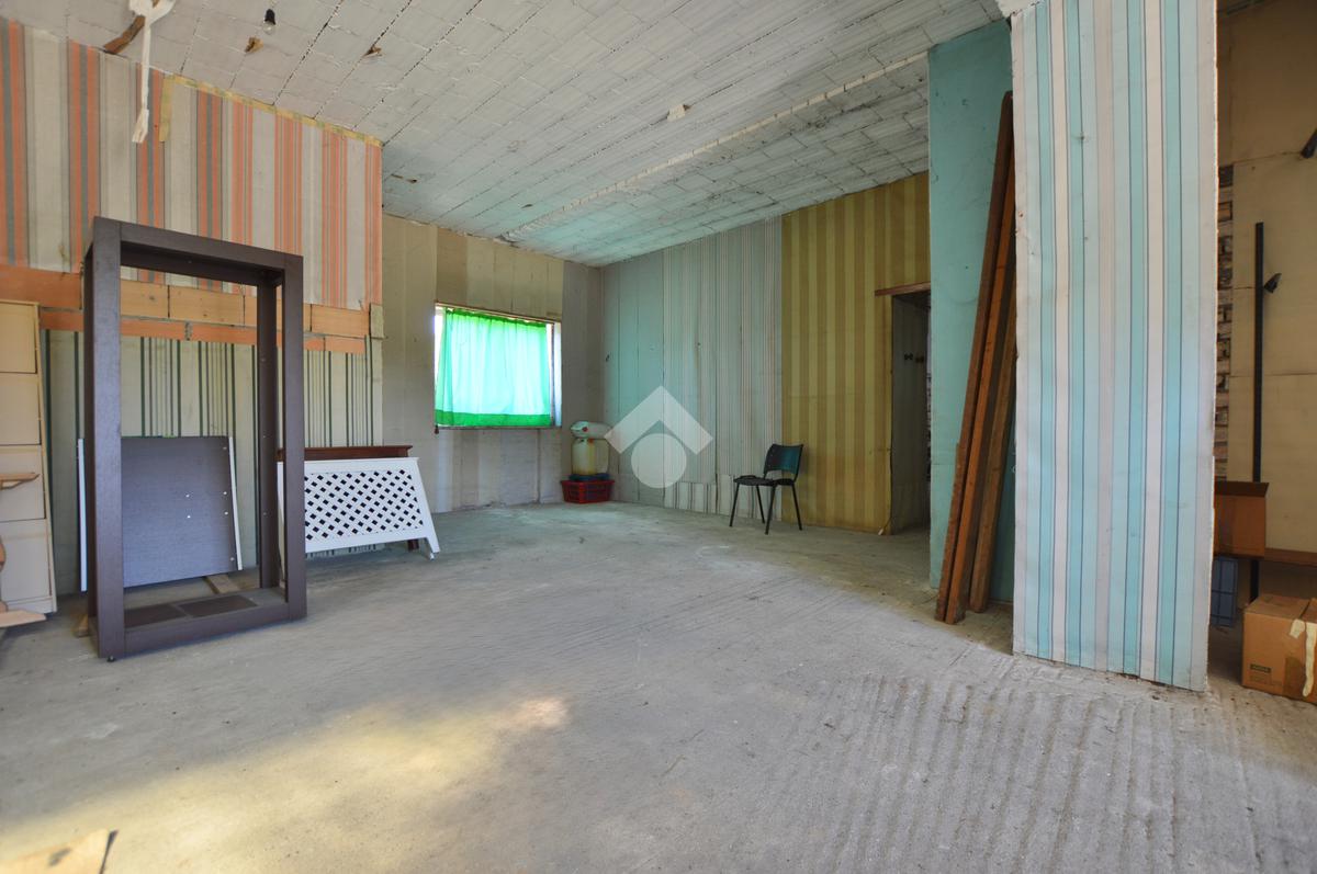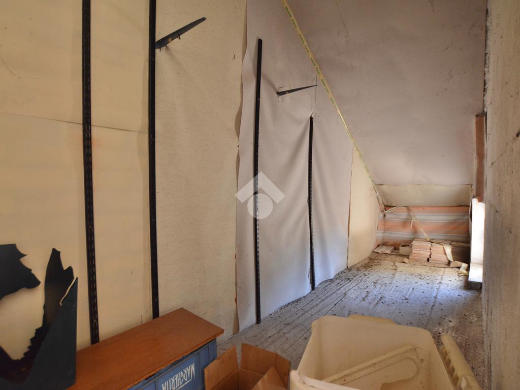 La porzione di destra si sviluppa interamente su un unico livello e presenta cucina e soggiorno separato, due camere da letto matrimoniali, un ripostiglio e un bagno finestrato con vasca. L’immobile dispone inoltre di due terrazzi, un giardino privato, un ampio magazzino al piano terra di circa 70 mq e un garage di circa 18 mq.