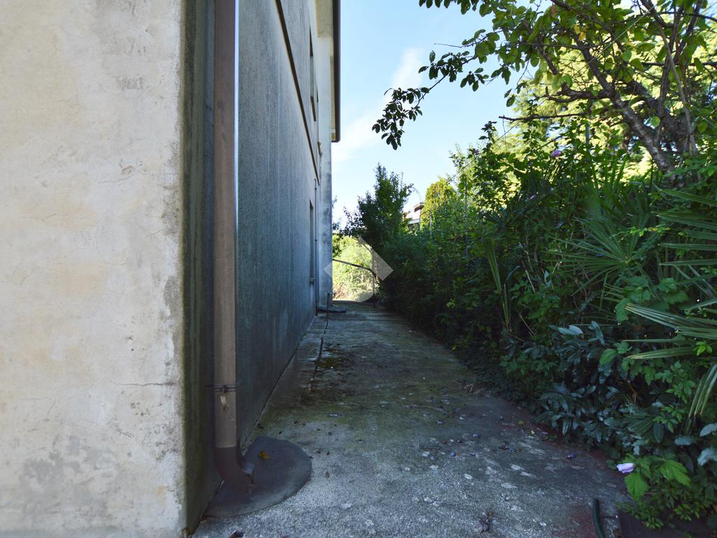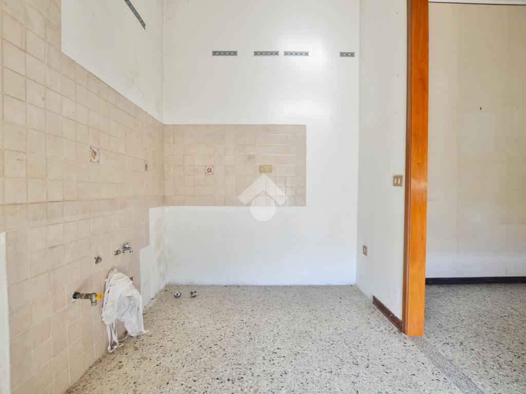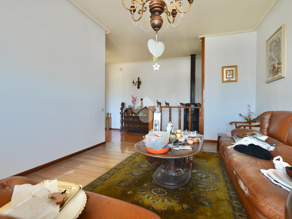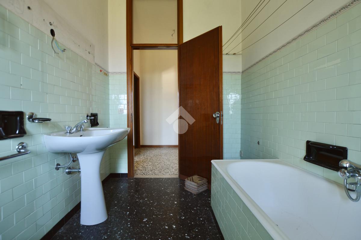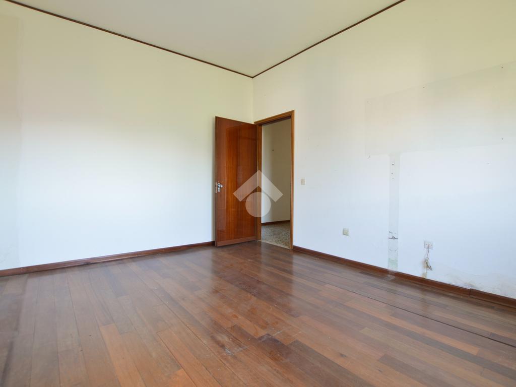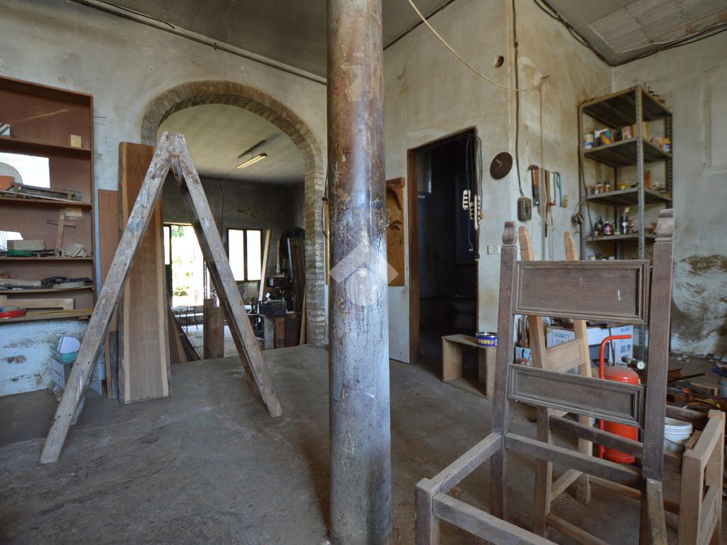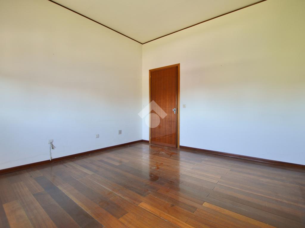 La porzione di destra si sviluppa interamente su un unico livello e presenta cucina e soggiorno separato, due camere da letto matrimoniali, un ripostiglio e un bagno finestrato con vasca. L’immobile dispone inoltre di due terrazzi, un giardino privato, un ampio magazzino al piano terra di circa 70 mq e un garage di circa 18 mq.