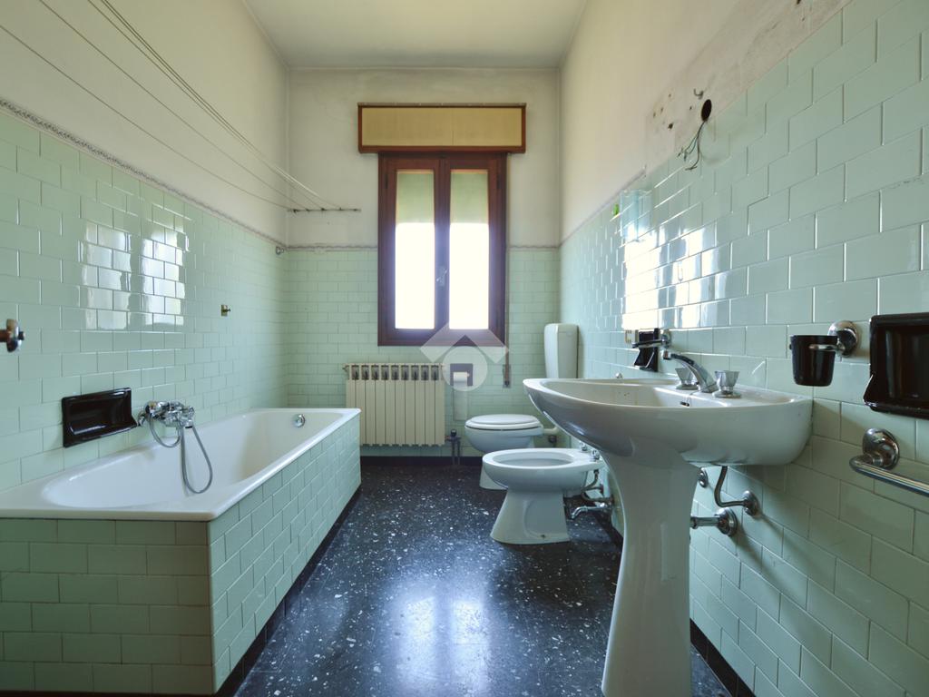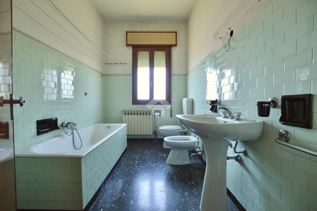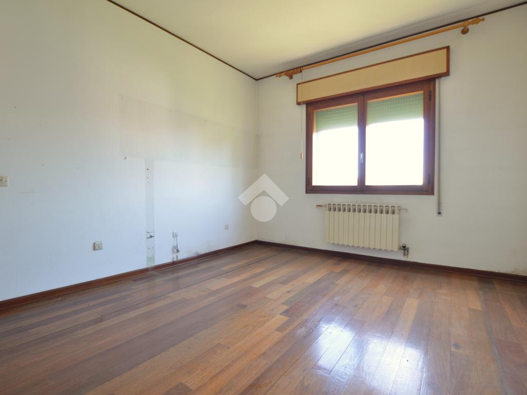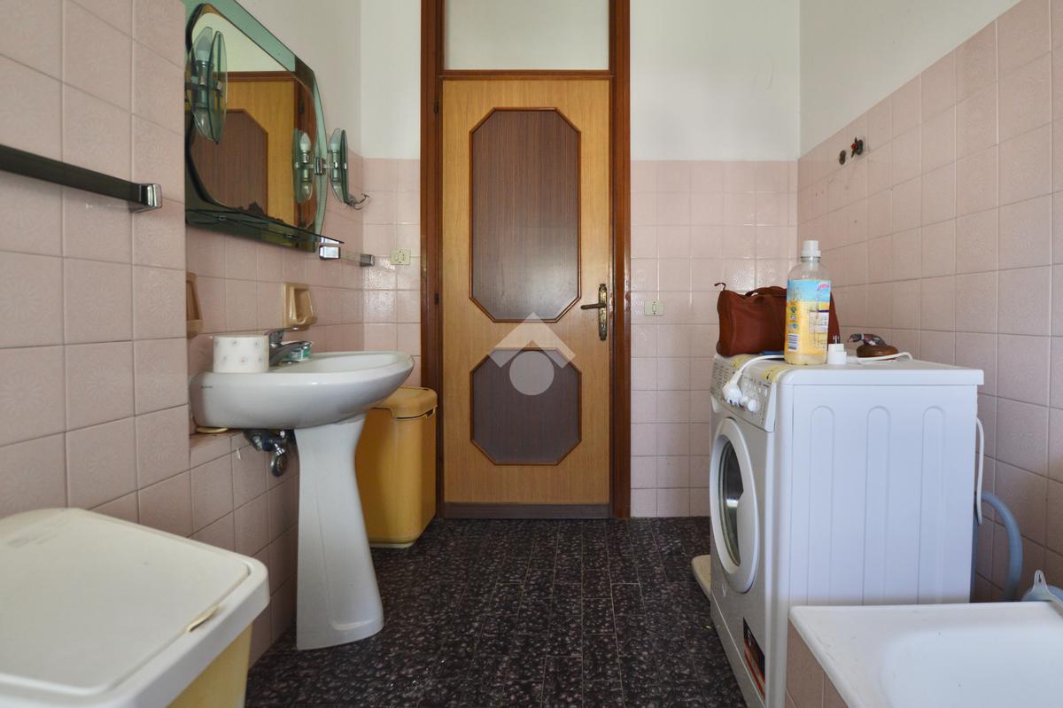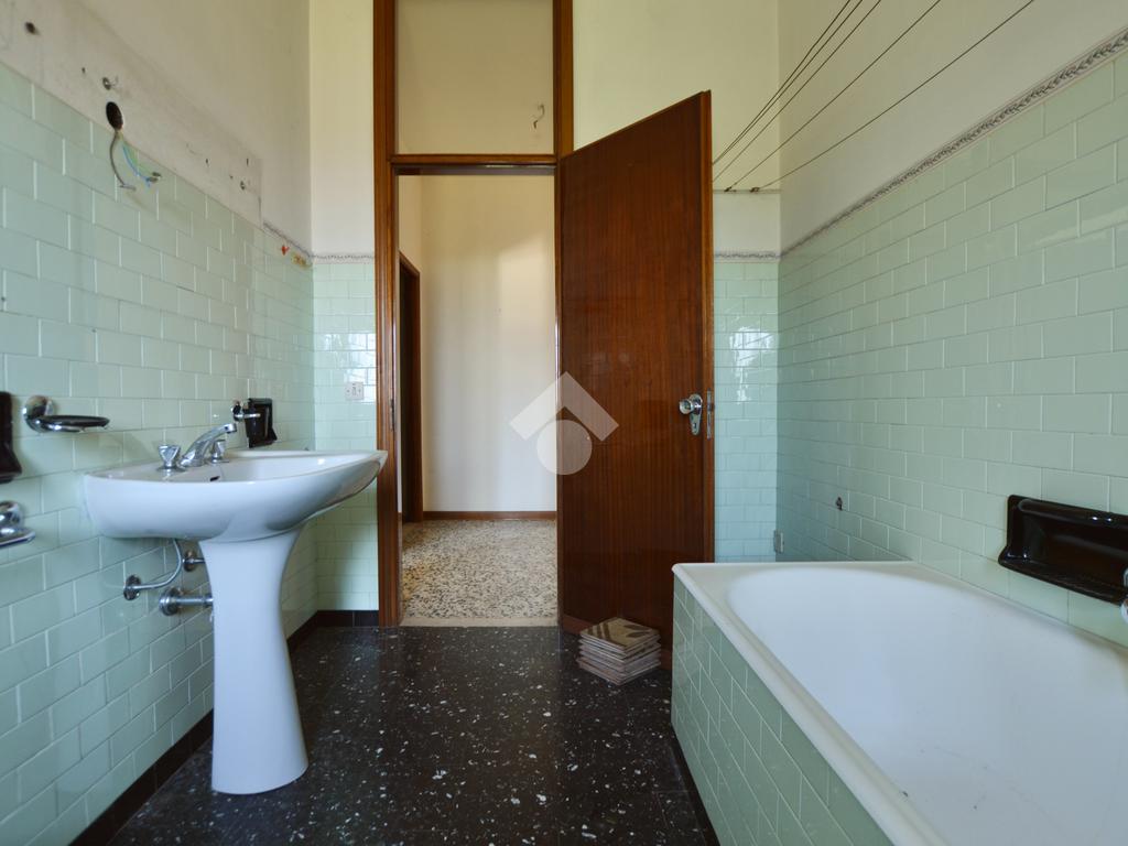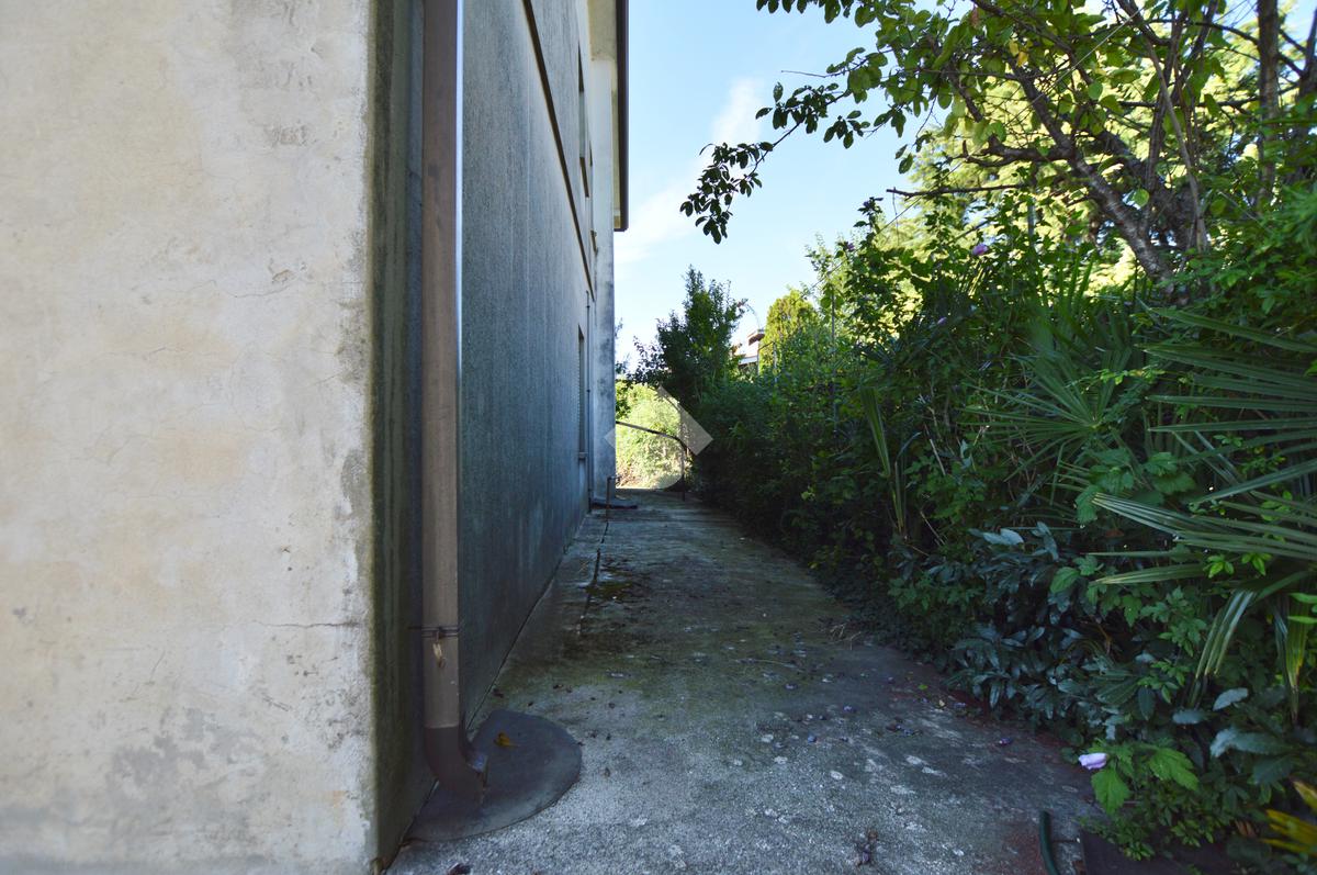 La porzione di destra si sviluppa interamente su un unico livello e presenta cucina e soggiorno separato, due camere da letto matrimoniali, un ripostiglio e un bagno finestrato con vasca. L’immobile dispone inoltre di due terrazzi, un giardino privato, un ampio magazzino al piano terra di circa 70 mq e un garage di circa 18 mq.