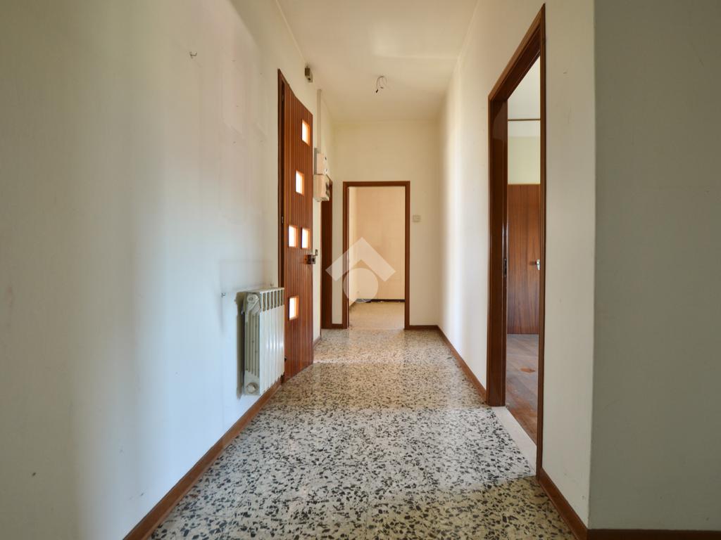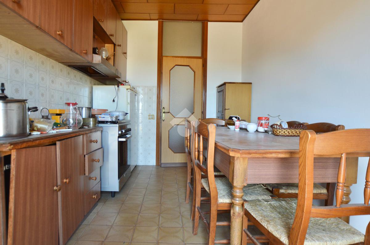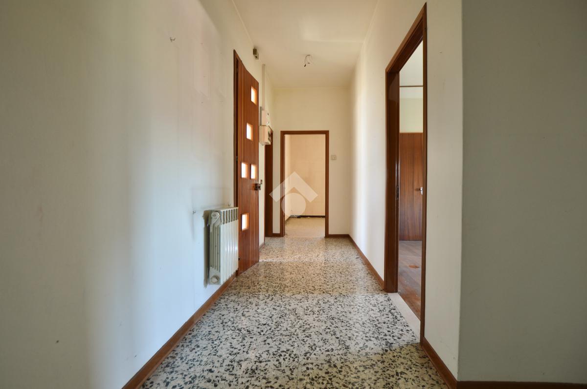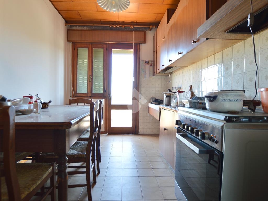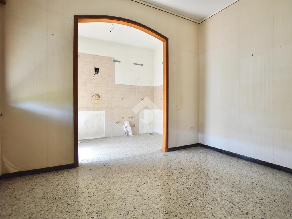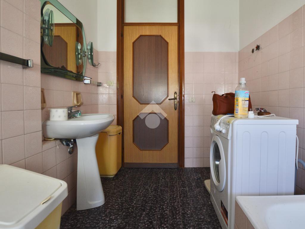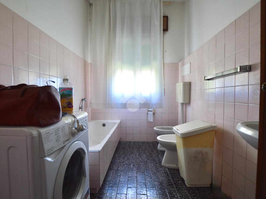 La porzione di destra si sviluppa interamente su un unico livello e presenta cucina e soggiorno separato, due camere da letto matrimoniali, un ripostiglio e un bagno finestrato con vasca. L’immobile dispone inoltre di due terrazzi, un giardino privato, un ampio magazzino al piano terra di circa 70 mq e un garage di circa 18 mq.