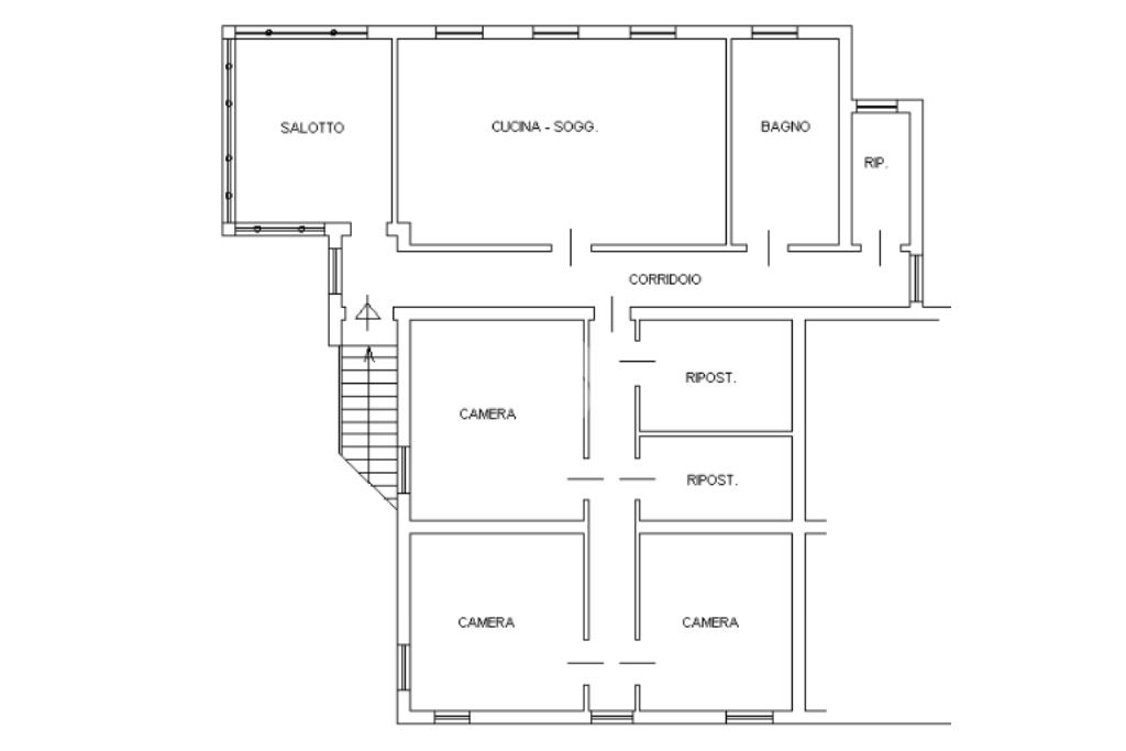 Al piano terra si trovano due appartamenti trilocali, entrambi dotati di un bagno. Il primo piano ospita altri due trilocali, anch’essi con un bagno ciascuno, mentre al secondo piano è presente un ulteriore appartamento trilocale che necessita di lavori di ristrutturazione, offrendo quindi la possibilità di personalizzare gli spazi secondo le proprie esigenze.
