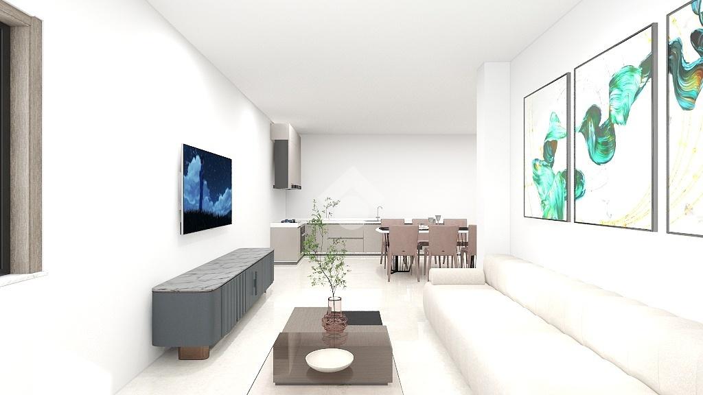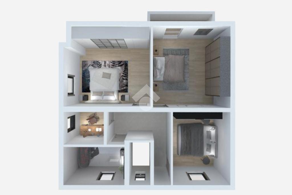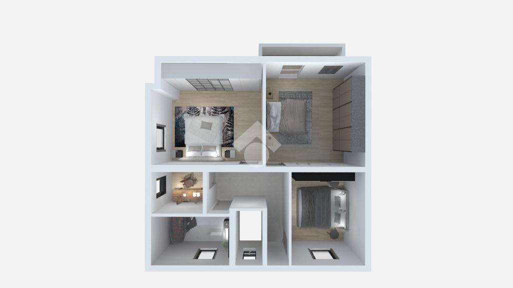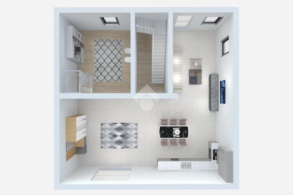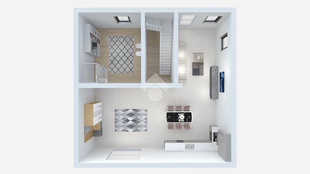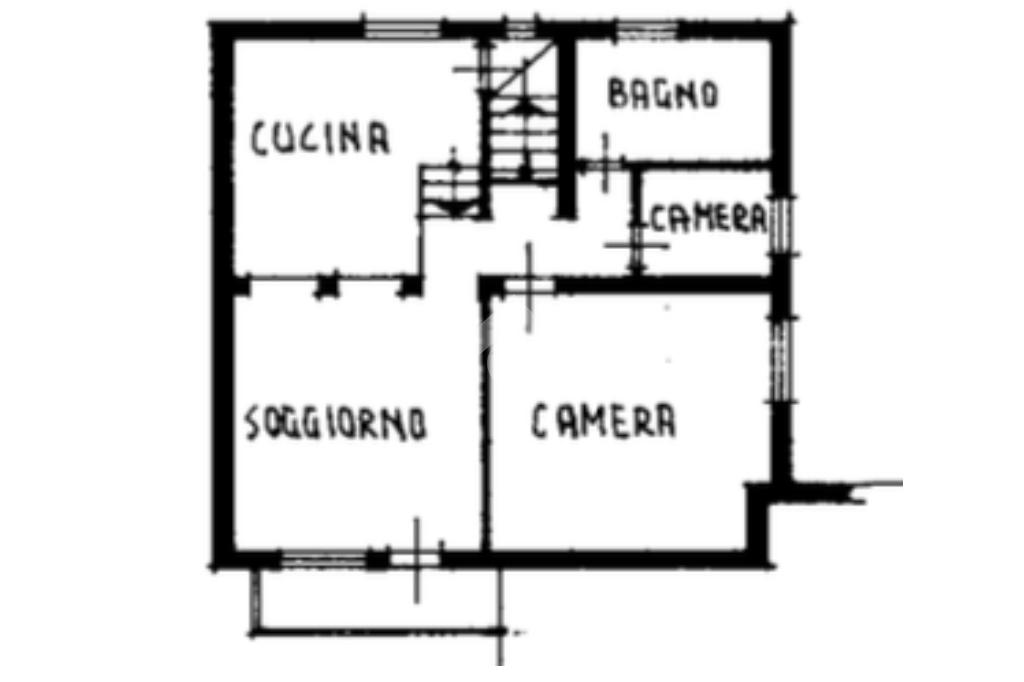 L'immobile sviluppato su due livelli, presenta al piano terra una taverna con magazzino. Passando al primo piano tramite scala interna, abbiamo accesso alla zona giorno, composta da cucina e salotto open space. Tramite disimpegno accediamo alla zona notte, composta da due camere, una singola ed una matrimoniale ed un bagno con vasca.