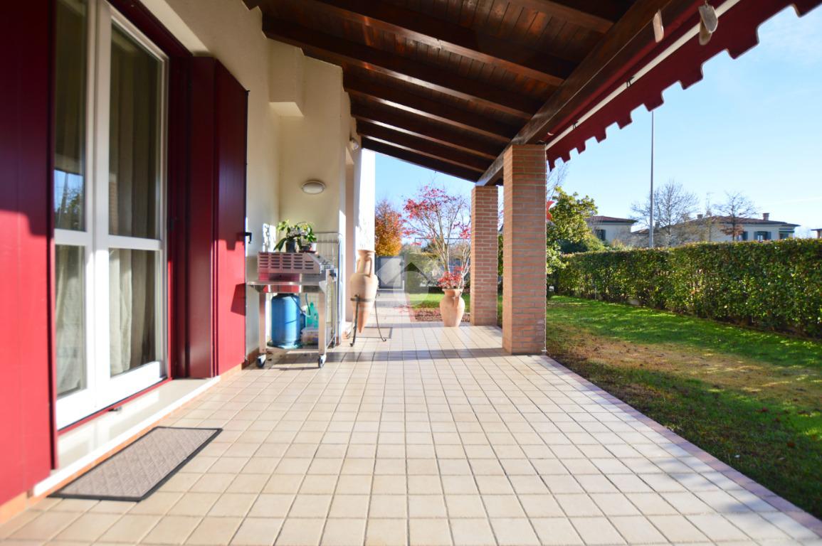 Completano l’immobile due terrazzi, un giardino a ferro di cavallo, ideale per momenti di relax all’aperto, e un portico perfetto per pranzi e cene estive. È inoltre presente una casetta in legno per il ricovero attrezzi, oltre a comfort quali zanzariere, tende da sole, allarme perimetrale e volumetrico e posto auto coperto.