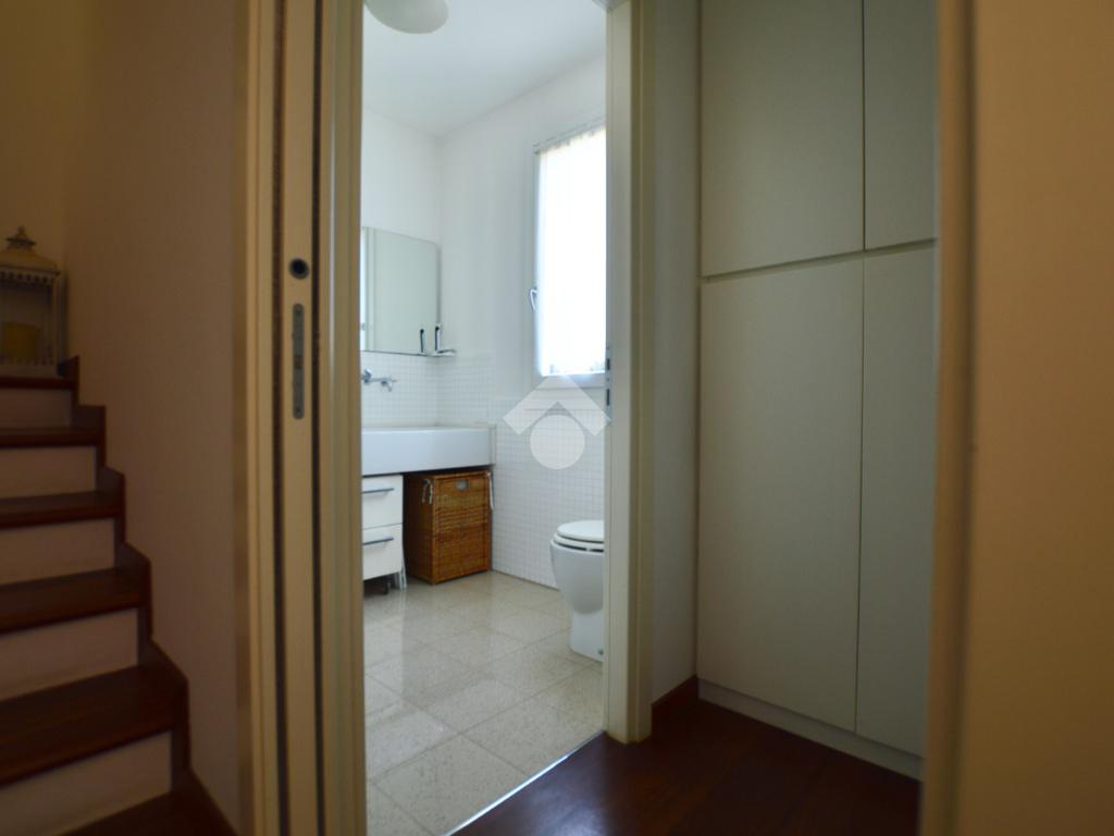 Al piano terra si trovano una cucina abitabile separata dal soggiorno e dalla sala da pranzo, un bagno di servizio con pratica zona lavanderia, un comodo ripostiglio ricavato nel sottoscala ed una dispensa.