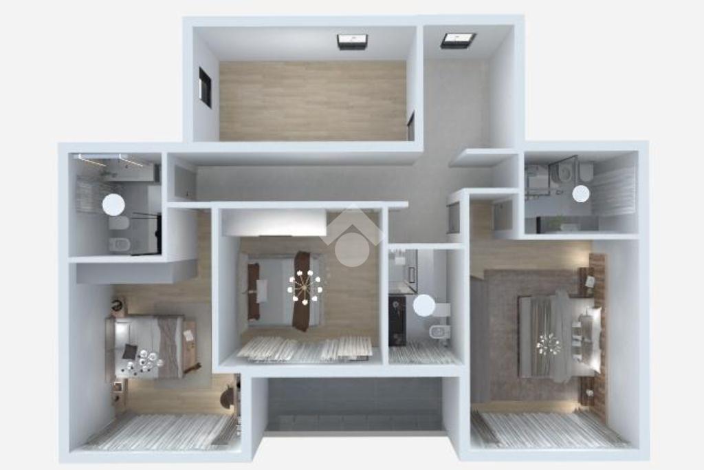 Al piano superiore si sviluppa la zona notte, pensata per garantire comfort e privacy: sono presenti tre camere da letto, di cui due ampie matrimoniali entrambe dotate di bagno privato, una camera doppia e uno studio, ideale anche come stanza smart working o hobby. A servizio del piano è presente un ulteriore bagno.